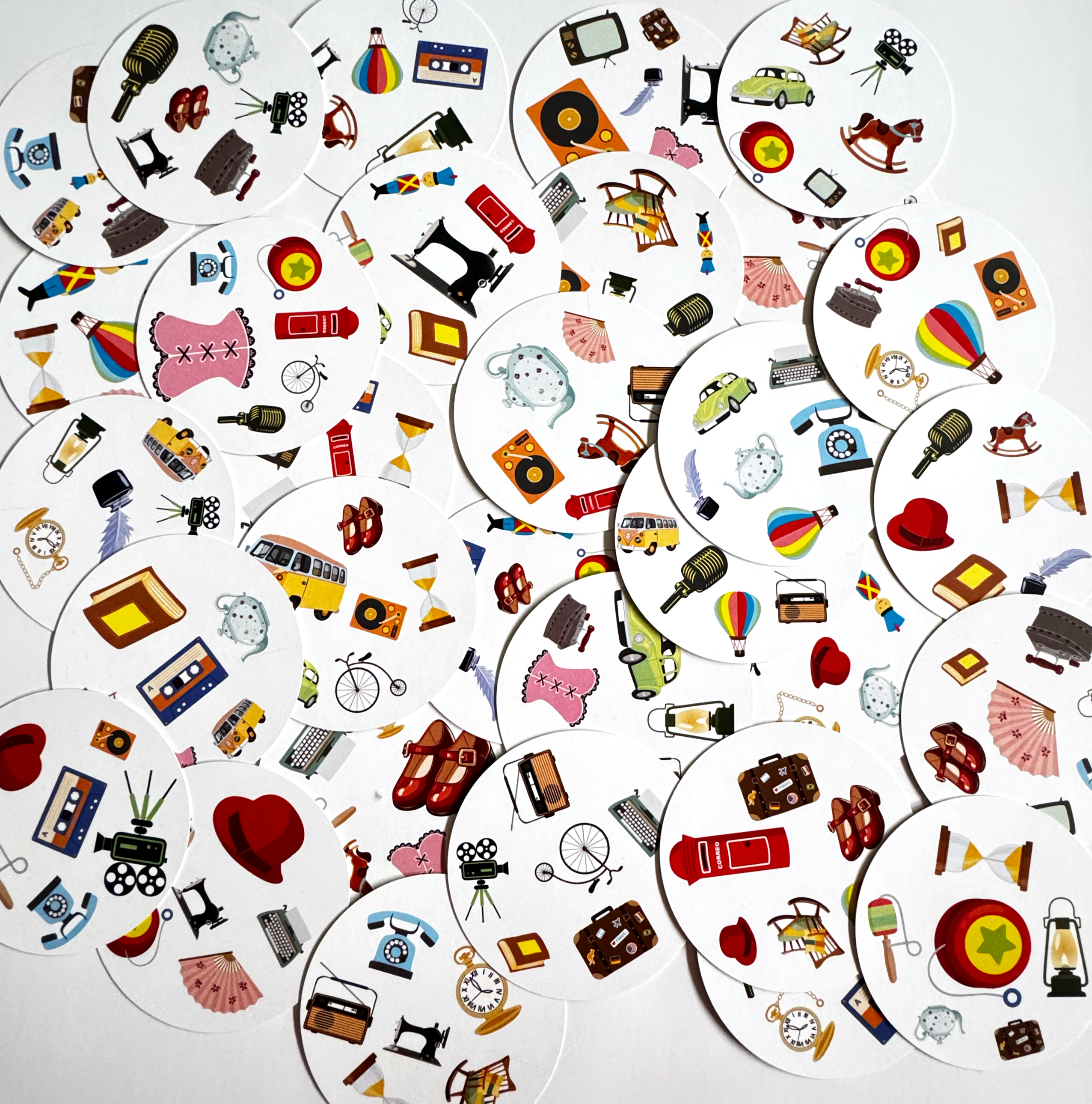 ¡A ENCONTRAR LAS COINCIDENCIAS! Cada carta tiene 6 dibujos pero solo uno coincide con alguno de las otras cartas ¿se animan a encontrarlos? Este juego ayuda a desarrollar habilidades cognitivas y rapidez visual. Incluye manual de insrucciones, 31 cartas y cajita de plastico para guardarlas. Tamaño de caja: 8.3×8.3x2cmPeso:106 Habilidades que desarrolla: atención visual, memoria y espacio.