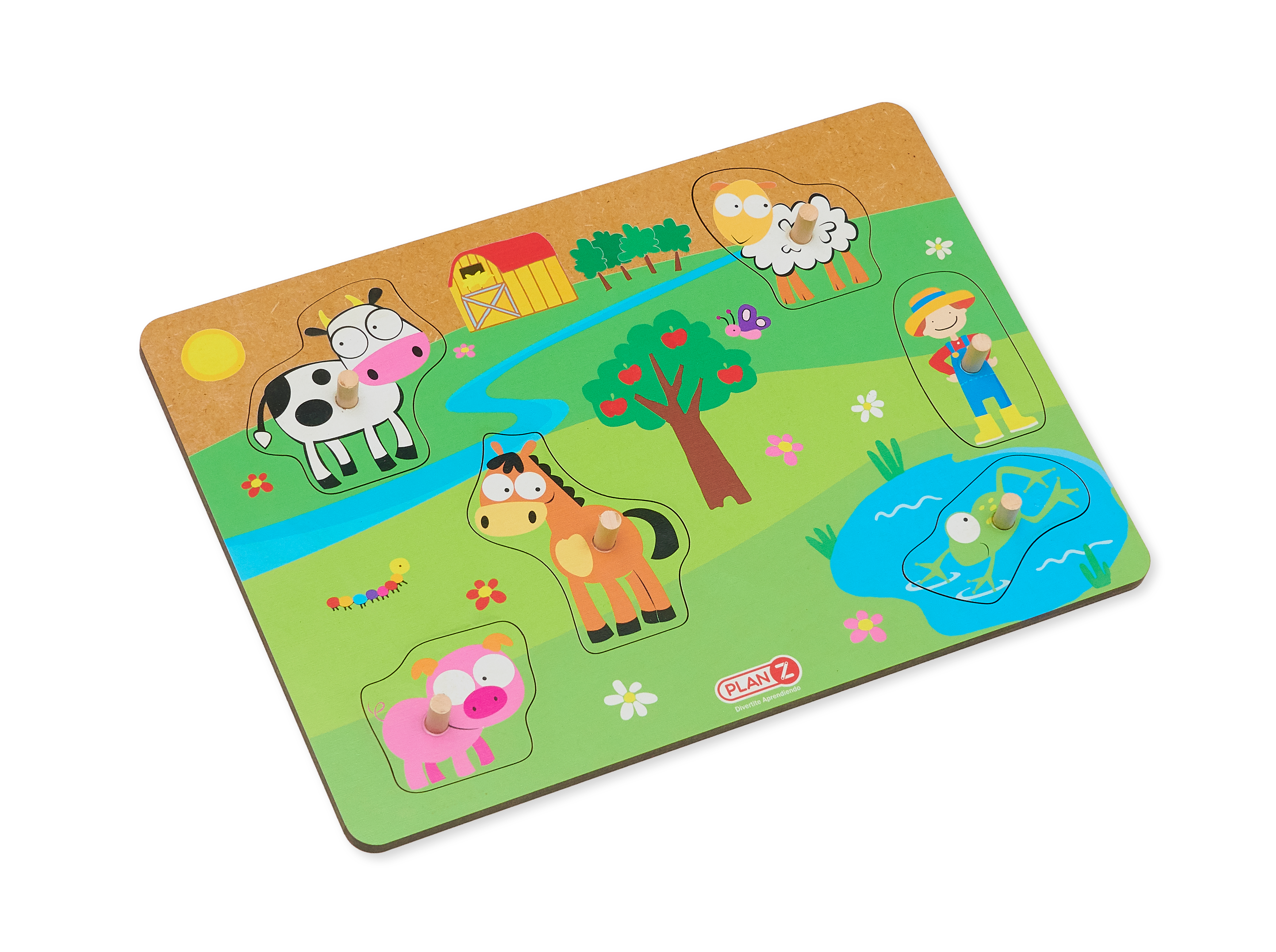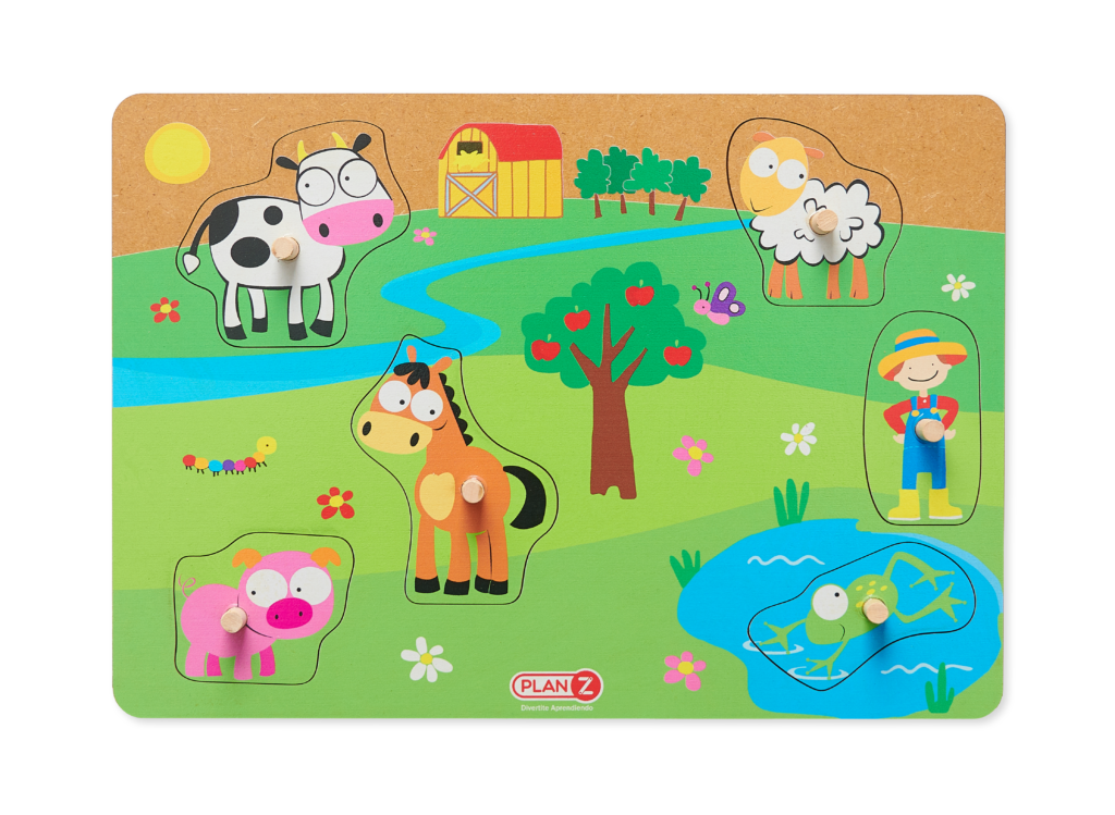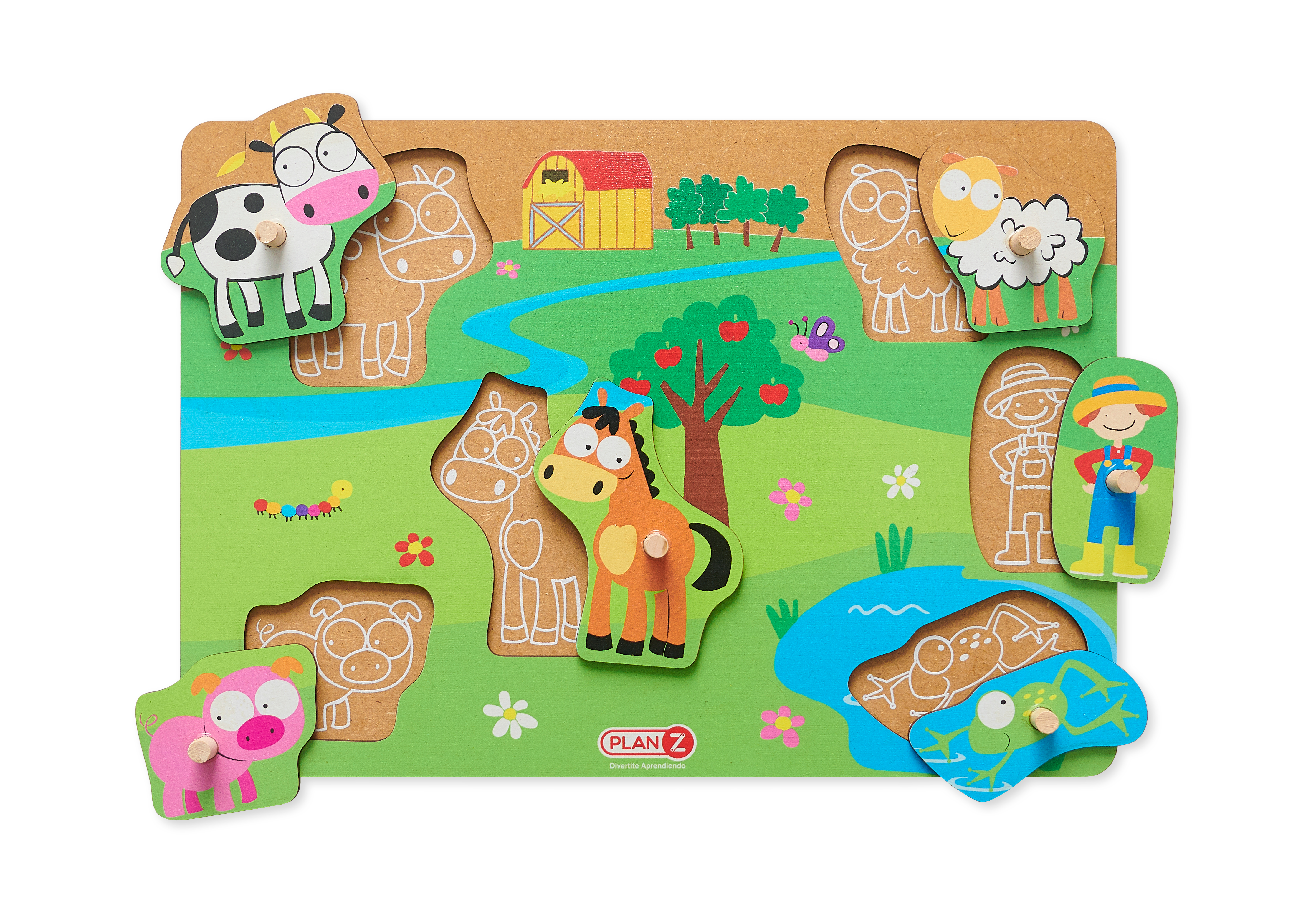 En este juego cada uno de nuestros amigos ocupa un lugar, ¿te animas a descubrirlos? Los juguetes de madera no tienen la ligereza de los juguetes de plástico. Son juguetes con mayor presencia. Los niños tienen que sujetarlos con conciencia y firmeza, estimulando, a su vez, la motricidad de las manos. Incluye 6 piezas diferentes de encastre: vaca, oveja, caballo, chancho, rana y granjero. El encastre es CON AGARRE. Tamaño de la base: 28x20x1cmPeso: 292g Habilidades que desarrolla: espacio, motricidad y creatividad.
