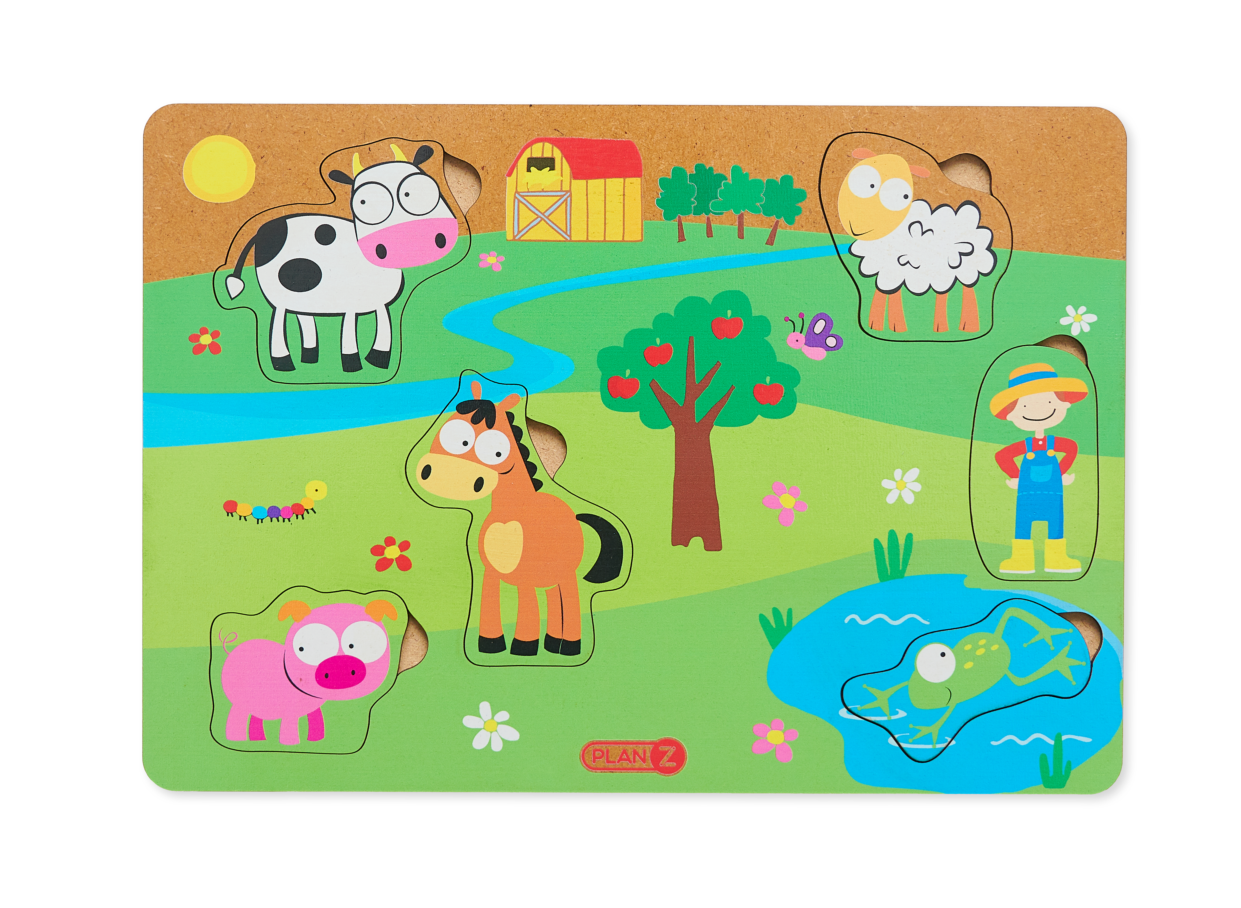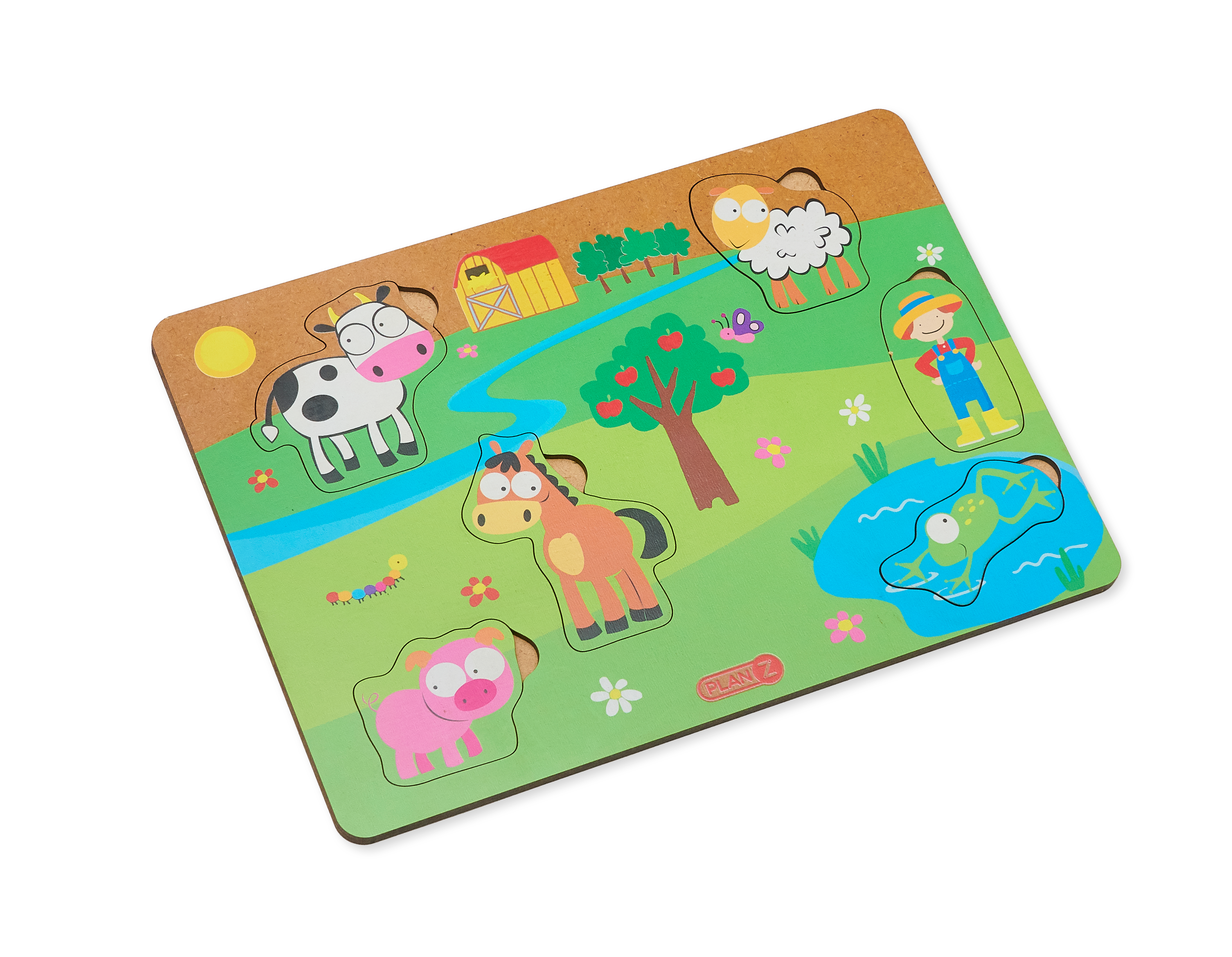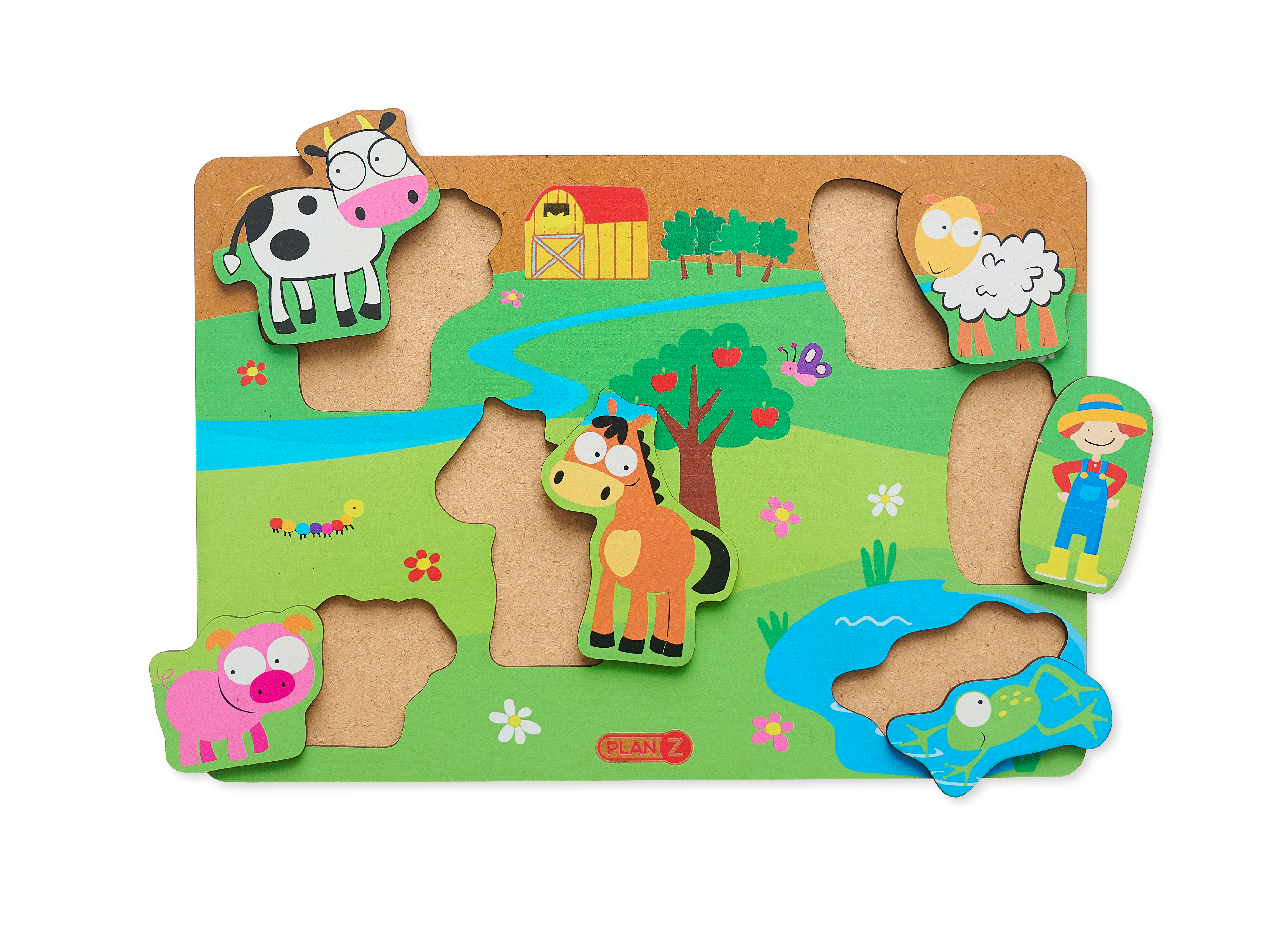 En este juego cada uno de nuestros amigos ocupa un lugar, ¿te animas a descubrirlos? Los juguetes de madera no tienen la ligereza de los juguetes de plástico. Son juguetes con mayor presencia. Los niños tienen que sujetarlos con conciencia y firmeza, estimulando, a su vez, la motricidad de las manos. Incluye 6 piezas diferentes de encastre: vaca, oveja, caballo, chancho, rana y granjero y. El encastre es SIMPLE. Tamaño de la base: 28x20x1cmPeso: 292g Habilidades que desarrolla: espacio, motricidad y creatividad.