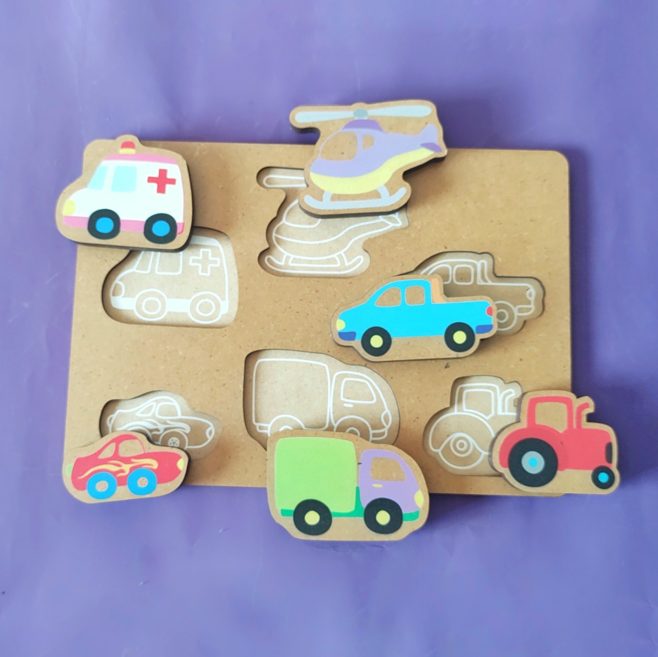 Opciones: dinos, autos, frutas y verduras ¡Divertite buscando el lugar de cada uno! Los juguetes de madera no tienen la ligereza de los juguetes de plástico. Son juguetes con mayor presencia. Los niños tienen que sujetarlos con conciencia y firmeza, estimulando, a su vez, la motricidad de las manos