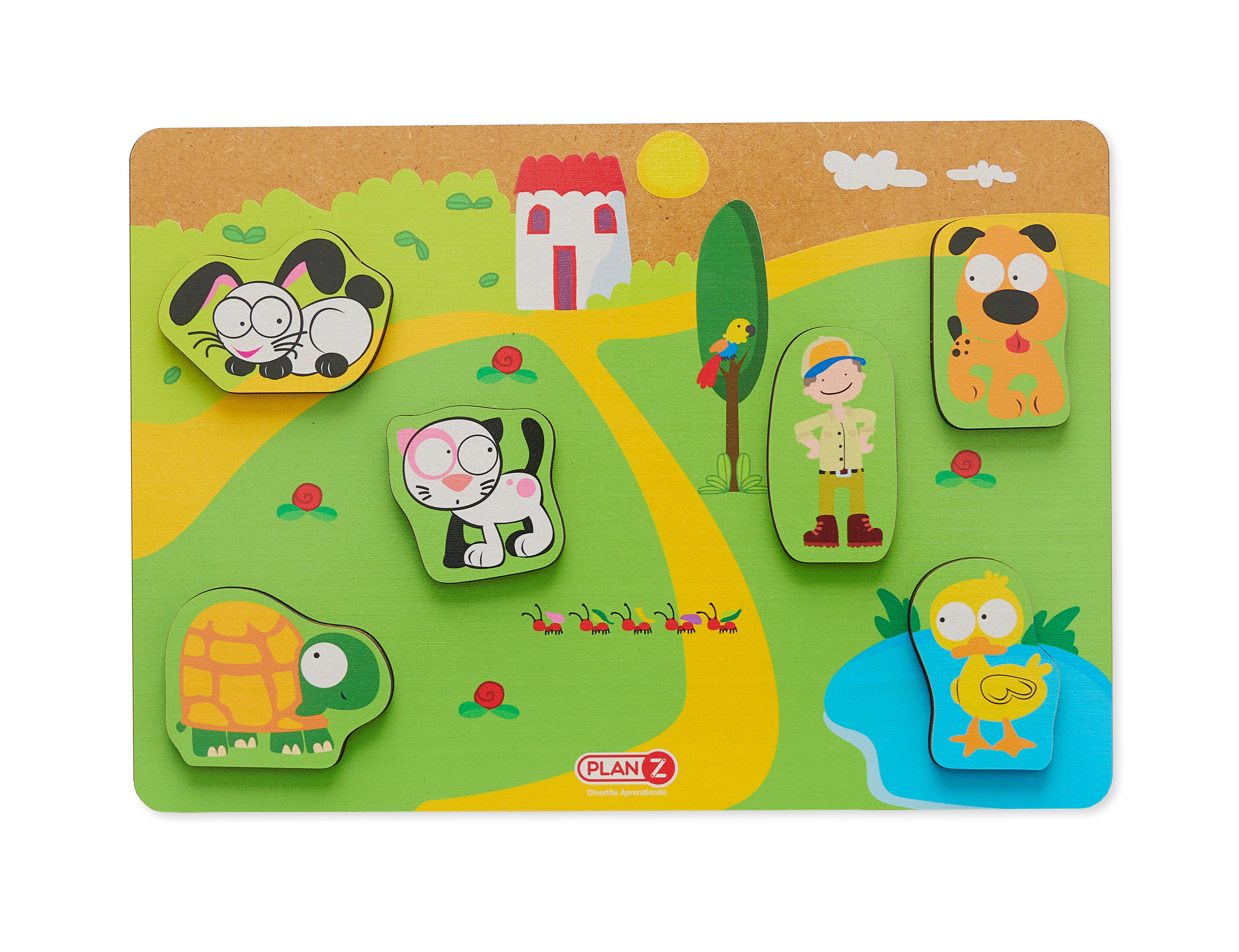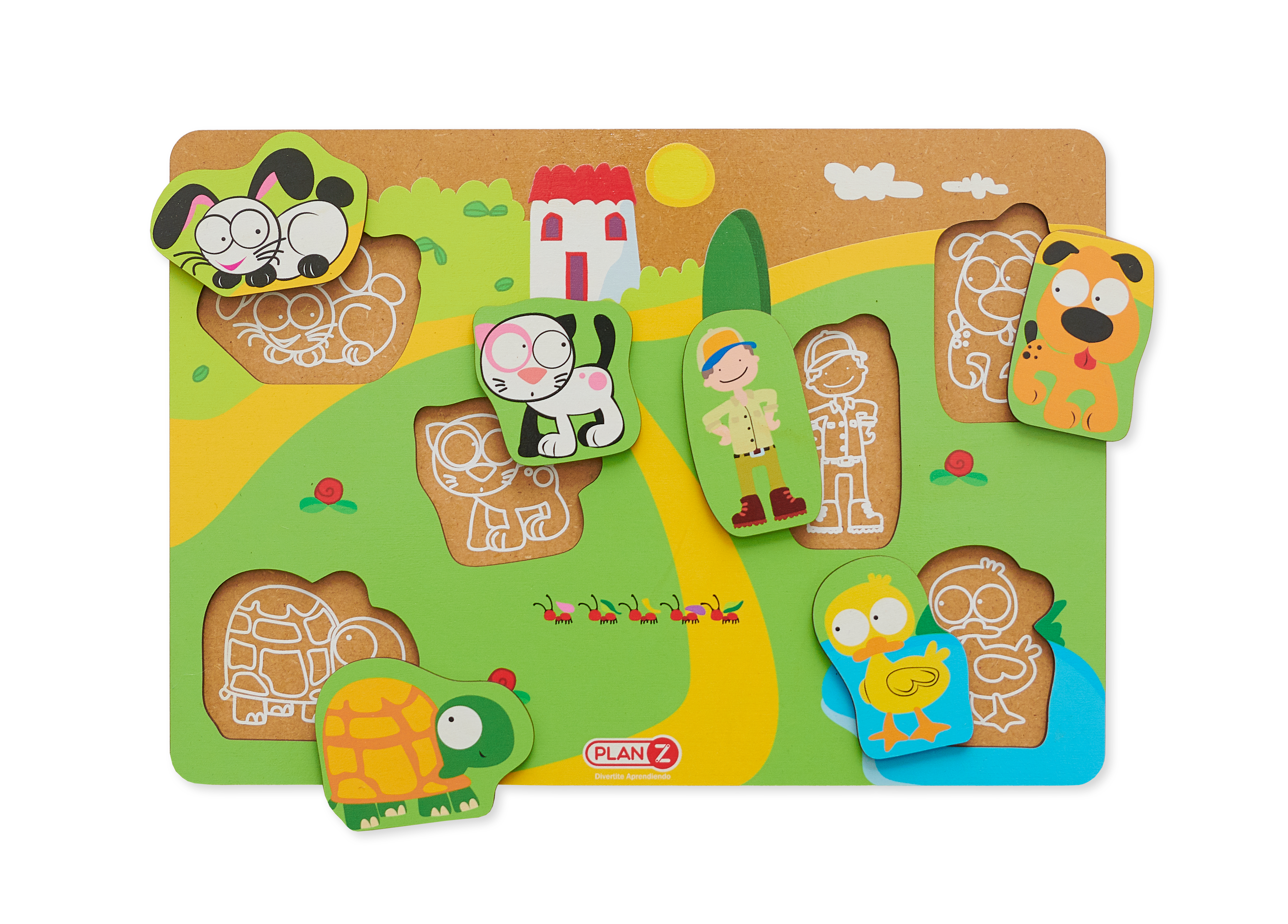 En este juego cada uno de nuestros amigos ocupa un lugar, ¿te animas a descubrirlos? Los juguetes de madera no tienen la ligereza de los juguetes de plástico. Son juguetes con mayor presencia. Los niños tienen que sujetarlos con conciencia y firmeza, estimulando, a su vez, la motricidad de las manos Incluye 6 piezas diferentes de encastre: conejo, perro, gato, tortuga, pato, cuidador. El encastre es en VOLUMEN Tamaño de Caja: 28x20x1cmPeso: 292g Habilidades que desarrolla: espacio, motricidad y creatividad.
