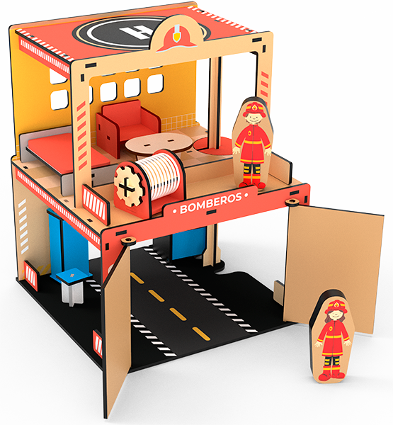 / Estación de Bomberos de maderaPersonajes y muebles