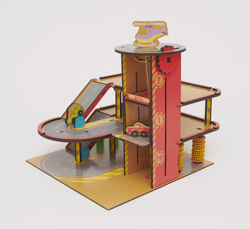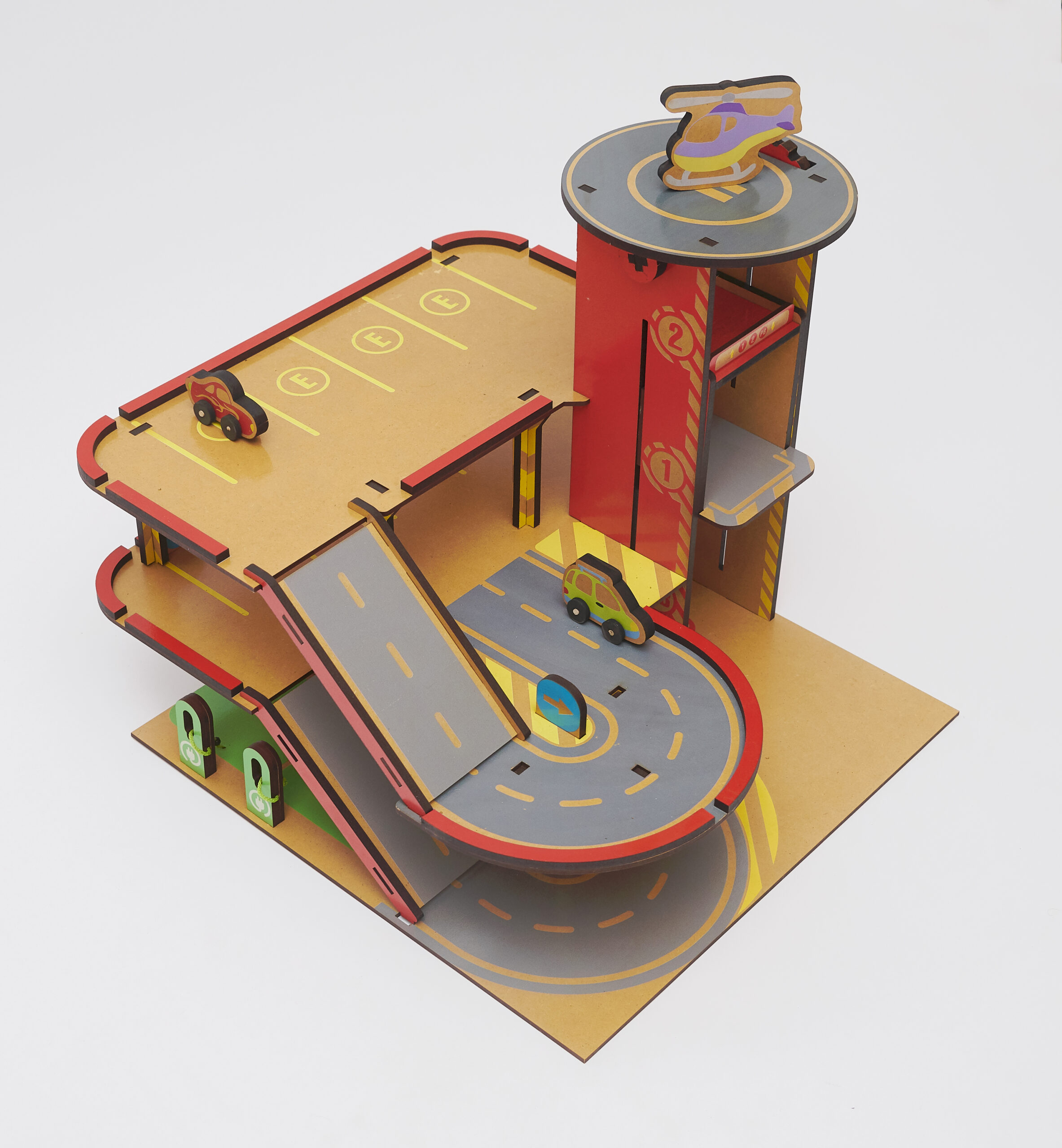 Divertite armando y jugando con esta super estación. Incluye dos autitos de madera y un helicóptero.