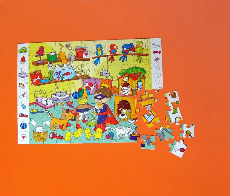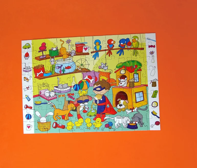 A boby, nuestra mascota, le duele la panza por eso tiene que visitar a su doctor ¡Divertite armando este original rompecabezas y mirá todo lo que pasa un día cualquiera en nuestra veterinaria! Los rompecabezas ayudan a ejercitar ambos lados del cerebro, incrementan la concentración, desarrollan la creatividad y la paciencia y mejoran las habilidades motoras. Incluye 88 piezas de cartón super resistentes. No se doblan y ensamblan perfectamente. Incluye juego de busca y encuentra Tamaño de caja: 10x20x10cmPeso: 236g Habilidades que desarrolla: motricidad, espacio y paciencia.